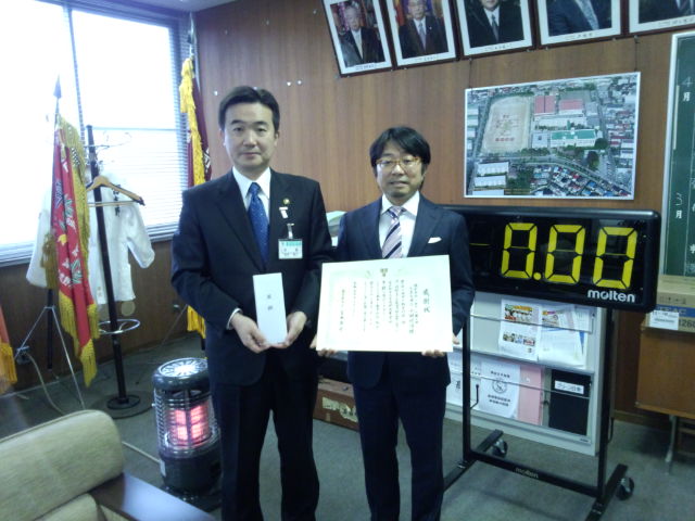 そして今日、習志野高校で宮本習志野市長と習志野高校校長、教育長同席にて、寄付品目録の贈呈式と感謝状の授与式を行って来ました。